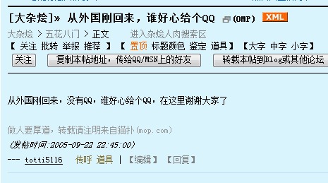 哈哈,晚上上猫扑,偶然发现自己在2005年发过这样一个帖子- -,原来我也在猫扑恶搞说谎过。罪过罪过。