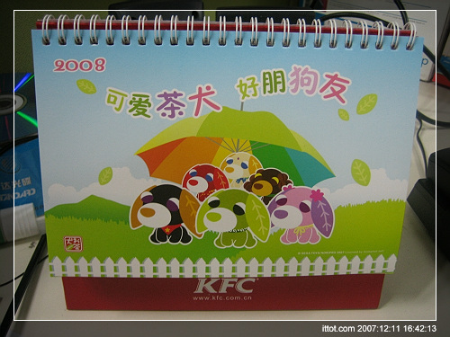 汗·~~看来是KFC的乌龙事件?因为按照正常人的思维,不会在鼠年做一个狗狗为主题的台历吧,Orz!